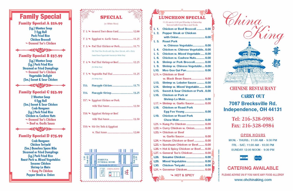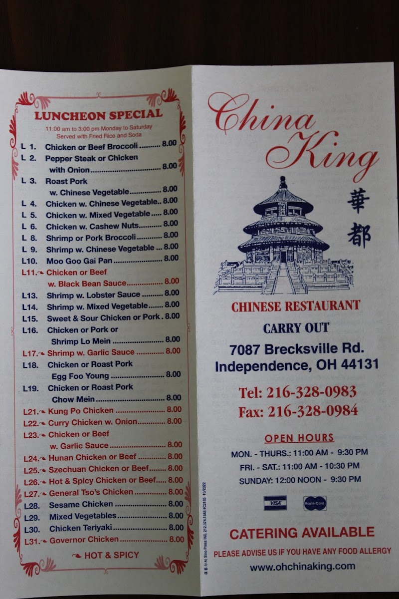 Welcome to China King Independence, your premier destination for authentic Chinese cuisine located at 7087 Brecksville Rd, Independence, OH. Known for its mouthwatering dishes and exceptional service, this restaurant is a favorite among locals for its take-out offerings.